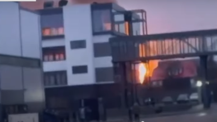 Api membara akibat ledakan terlihat di kota tersebut. Para warga dikabarkan langsung mengungsi.