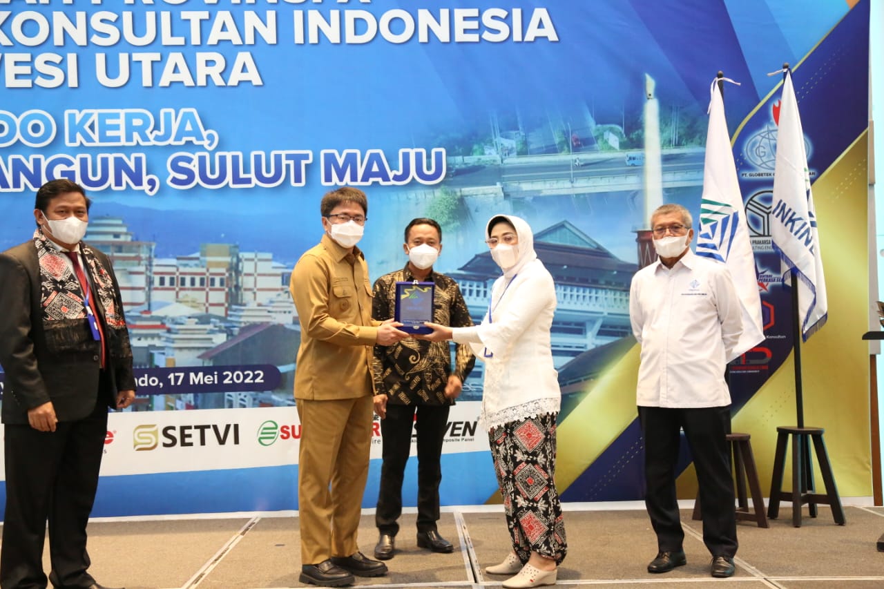 Acara diakhiri dengan penyerahan cenderamata dari DPP Inkindo Sulut kepada Bpk. Wali Kota Manado.(***)