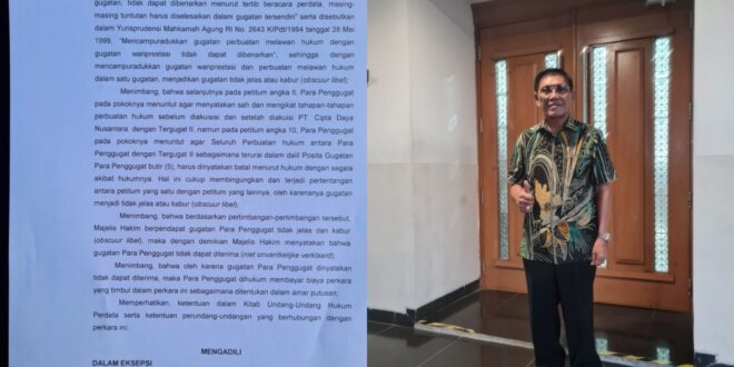 Nyatanya informasi tersebut adalah hoax. Kuasa hukum dari PT CDN AKA Sinergi. yakni, Franky Robert Weku, SH, kepada awak media, Senin 13 Januari 2025, menegaskan, bahwa akan menempuh langkah hukum atas adanya dugaan keterangan atau inforrmasi ‘Bohong’ yang disampaikan Sehan Ambaru.