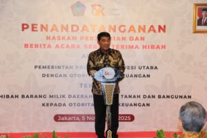 Jakarta, 5 November 2025 — Pemerintah Provinsi Sulawesi Utara (Pemprov Sulut) secara resmi menandatangani Naskah Perjanjian Hibah Daerah (NPHD) dan Berita Acara Serah Terima (BAST) dengan Otoritas Jasa Keuangan (OJK), bertempat di Jakarta, Rabu (5/11/2025).